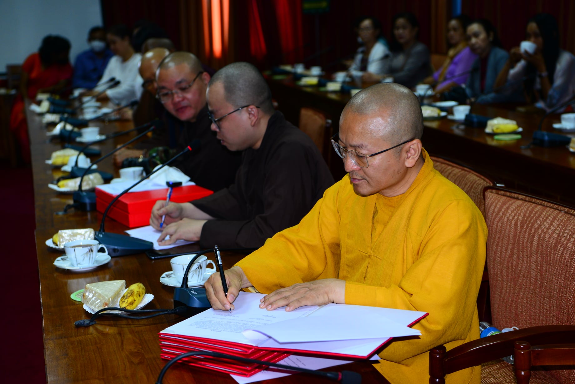 Sau khi hai bên giới thiệu về quá trình hình thành, phát triển và chương trình đào tạo Phật học từ Cử nhân đến Tiến sĩ, lễ ký kết bản ghi nhớ hợp tác giữa hai trường được diễn ra trọng thể trước sự chứng kiến của phái đoàn Việt Nam gồm hơn 40 thành viên và Hội đồng Điều hành của trường BPU.