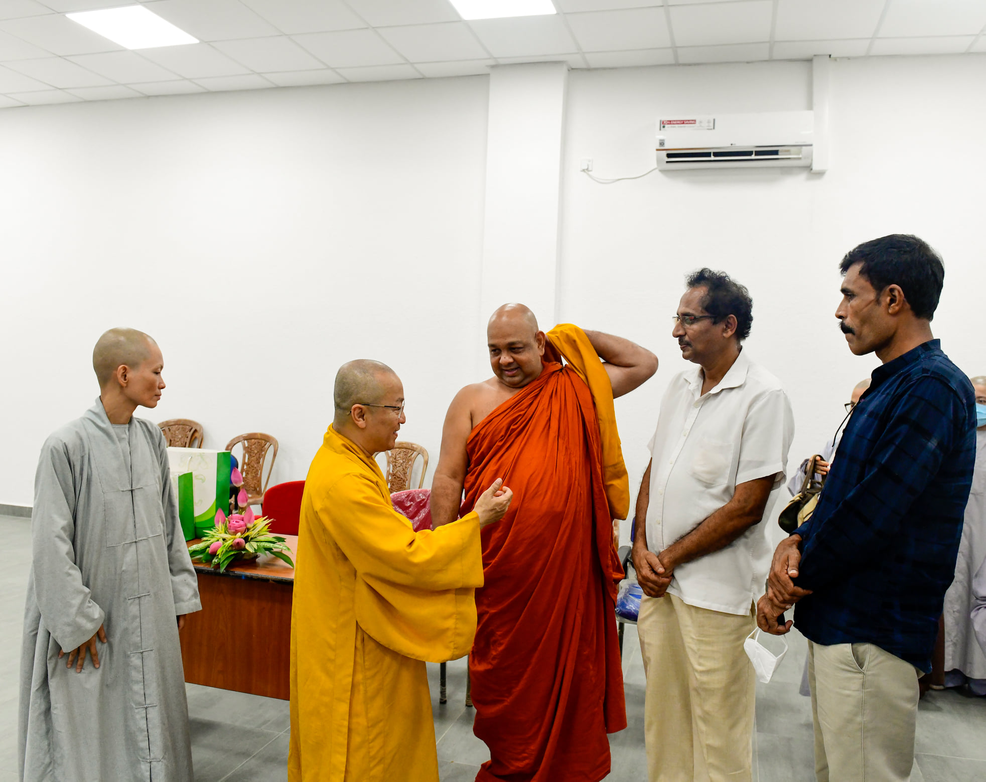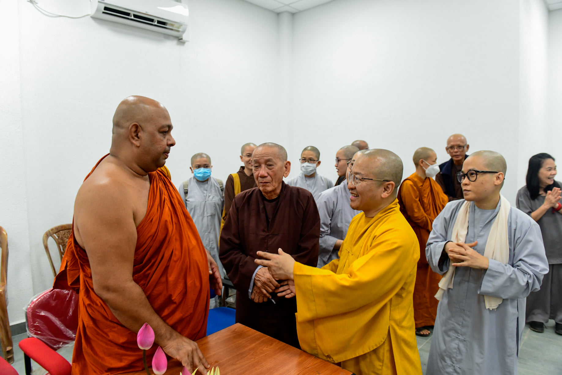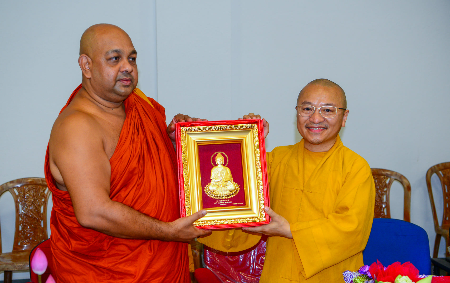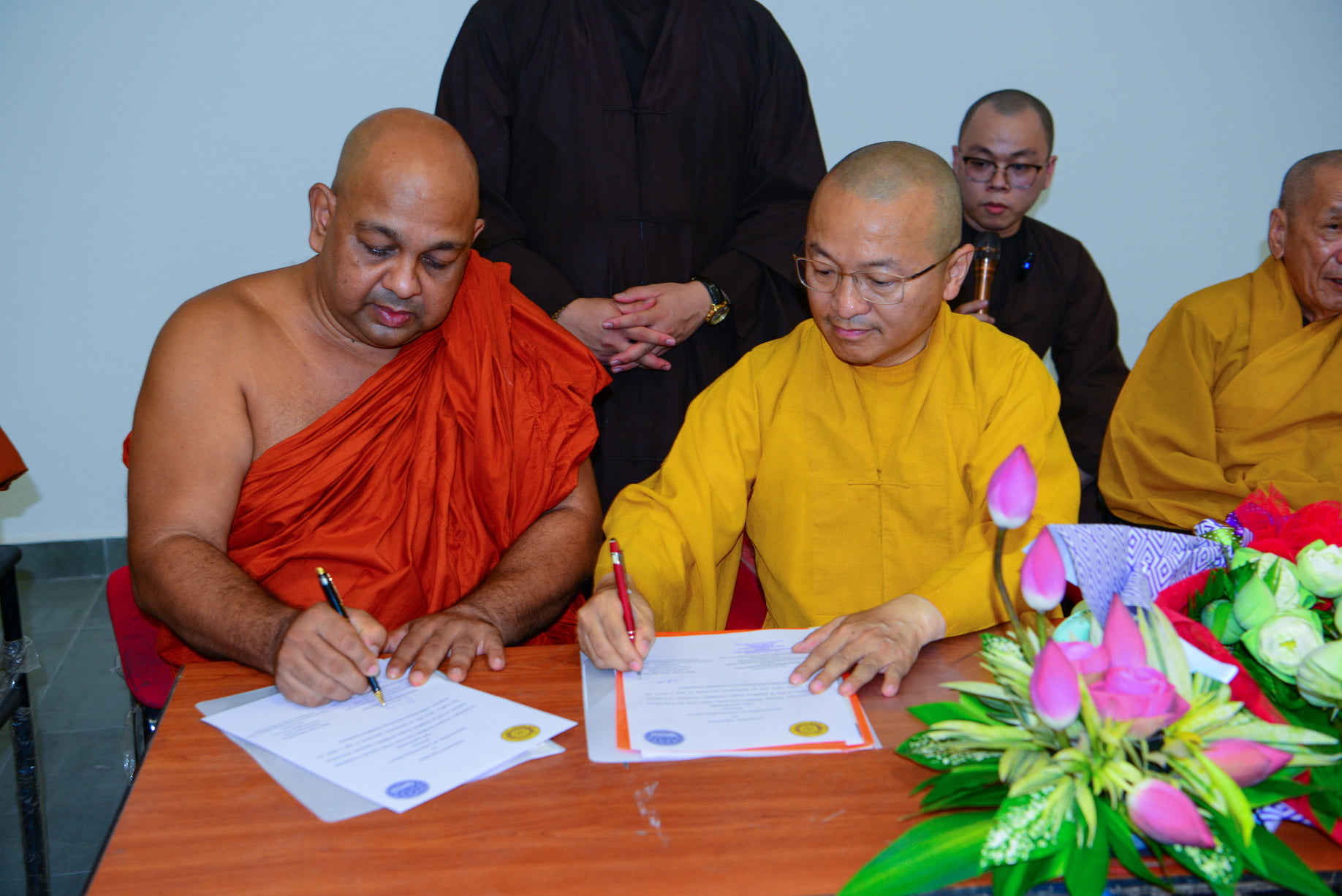 Tiếp đón đoàn Việt Nam có TT.GS.TS. Medawachchiye Dammajothi và 5 vị trưởng khoa. Sau khi giới thiệu quá trình hình thành và phát triển và những đóng góp to lớn của viện PGIPBS về đào tạo Phật học và Pali cho cộng đồng và Tăng đoàn Phật giáo quốc tế, TT. Medawachchiye Dammajothi và TT. Thích Nhật Từ thay mặt Trưởng lão HT. Thích Trí Quảng, Quyền Pháp chủ GHPGVN và Viện trưởng HVPGVN tại TP. HCM, đã ký bản ghi nhớ về chương trình hợp tác giữa hai viện.